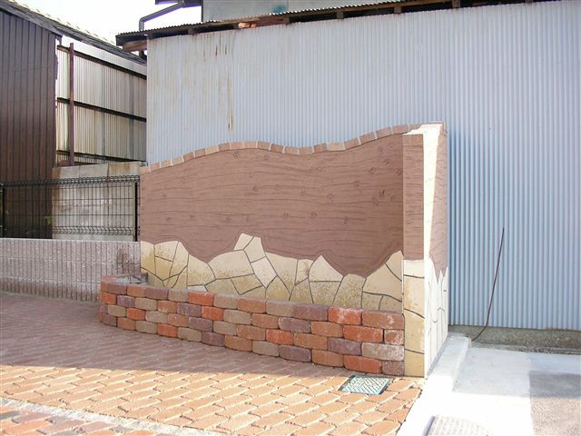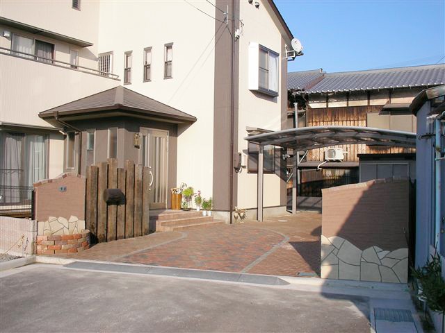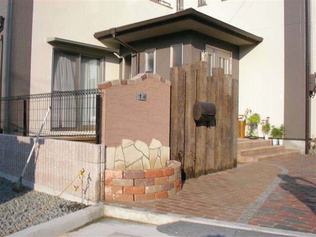 レンガ、石版、塗り壁でデザイン性に富んだ門に仕上がりました。